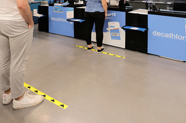 Meget synlige gulvmarkeringslinjer i kontrastfarver identificerer effektivt